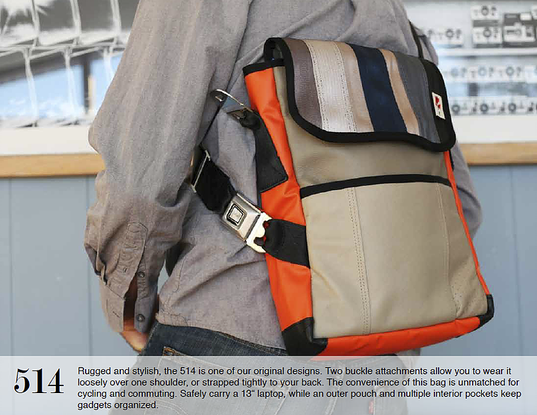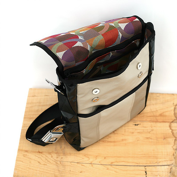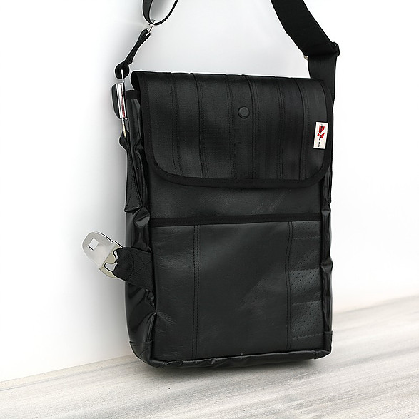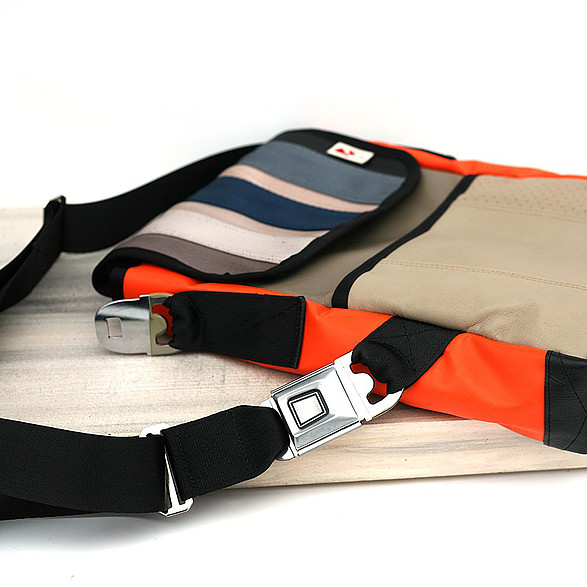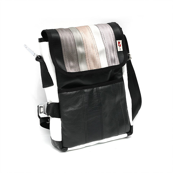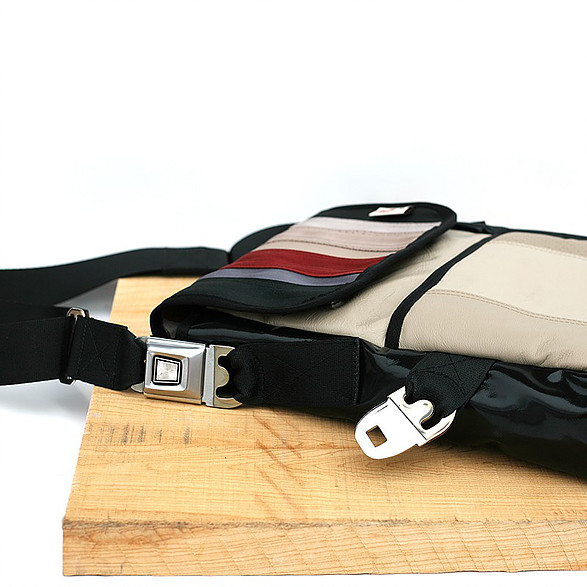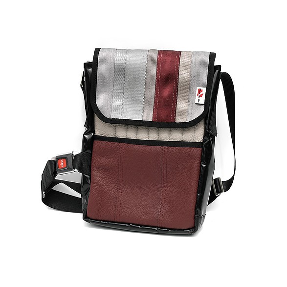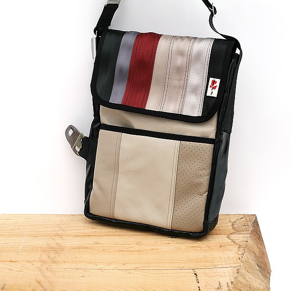 Recycelt aus gebrauchten Autositzen, Sicherheitsgurten und anderen automobilen Materialien, sind diese Taschen einzigartig, funktional und einfach schön. Alle Taschen sind so designt, dass sie Ihre alltäglichen Reisen erleichtern, indem sie verlässlich sind, wie die Sicherheitsgurte die sie im früheren Leben waren (Made by MariClaRo, Kanada).