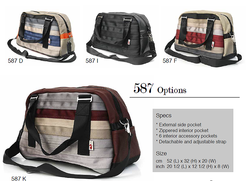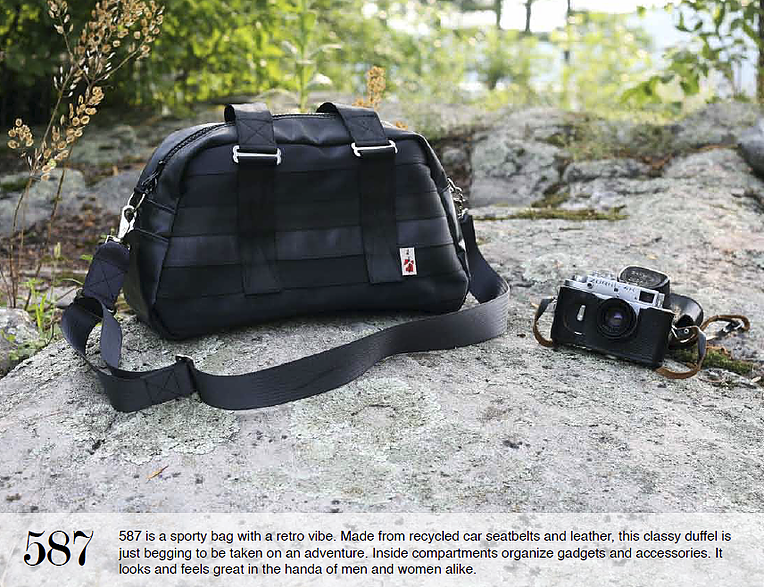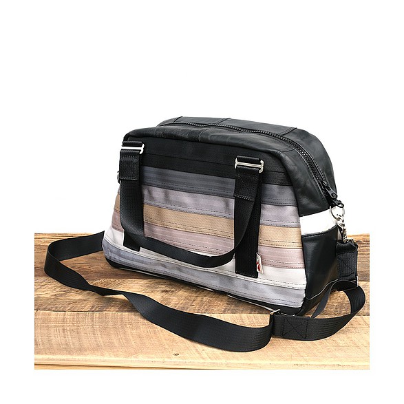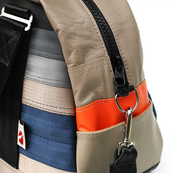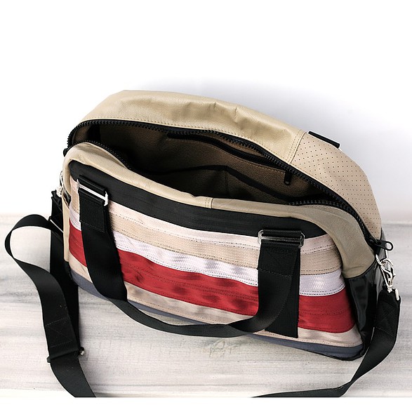 Recycelt aus gebrauchten Autositzen, Sicherheitsgurten und anderen automobilen Materialien, sind diese Taschen einzigartig, funktional und einfach schön. Alle Taschen sind so designt, dass sie Ihre alltäglichen Reisen erleichtern, indem sie verlässlich sind, wie die Sicherheitsgurte die sie im früheren Leben waren (Made by MariClaRo, Kanada).